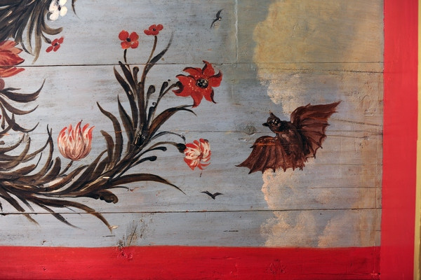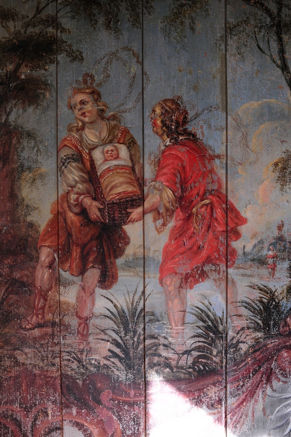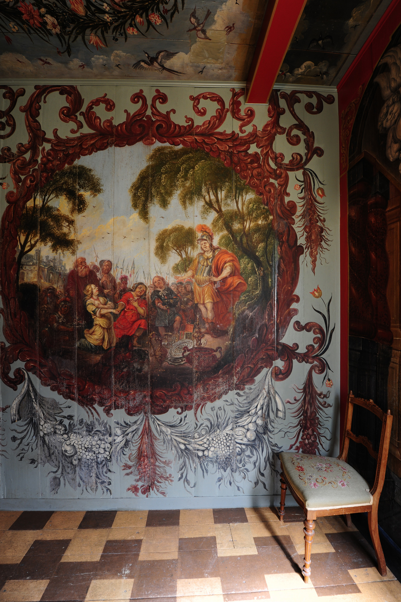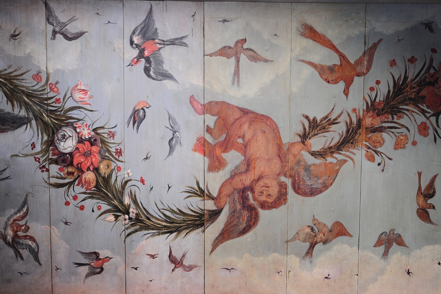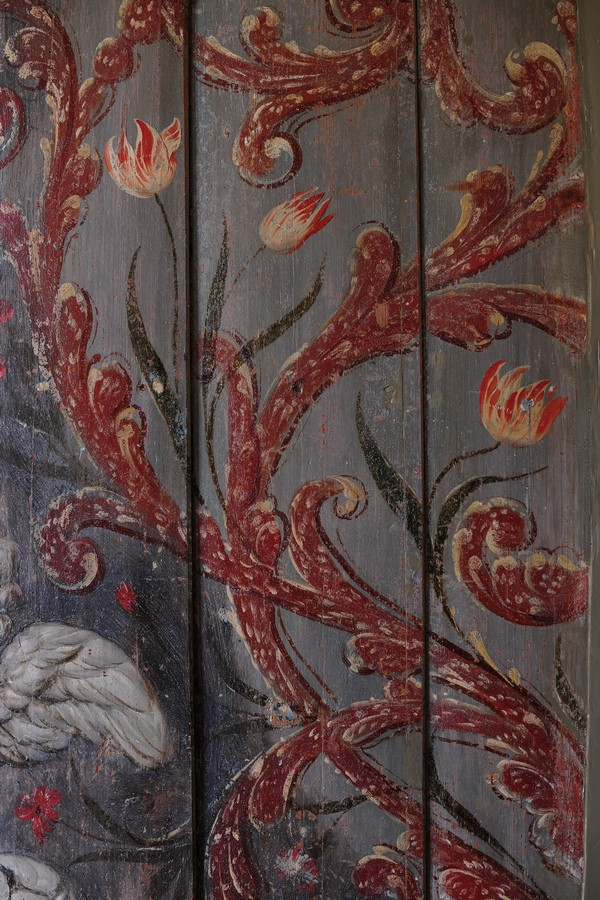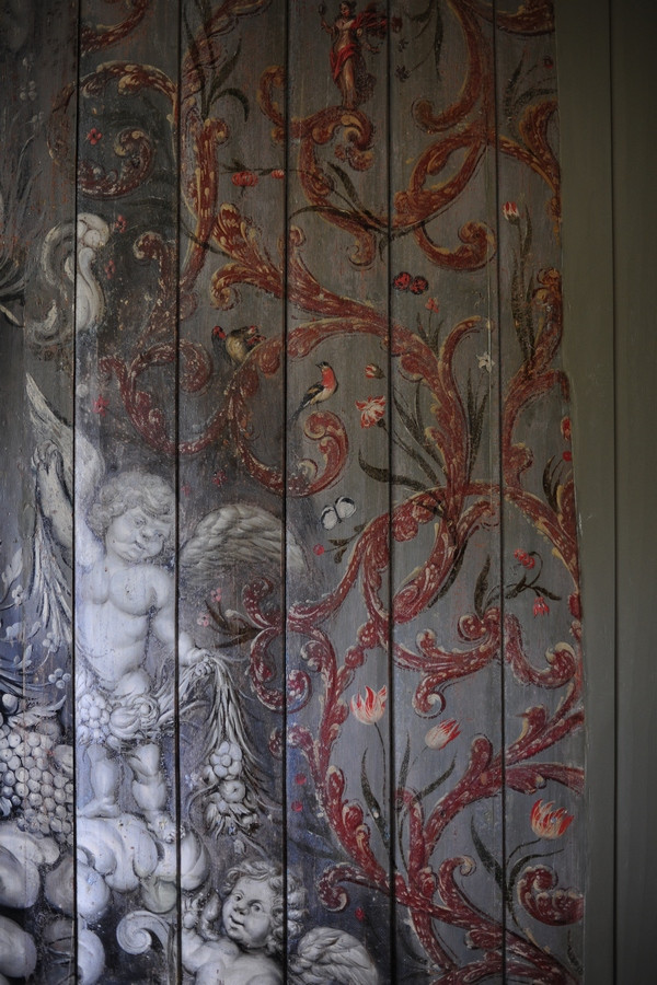 Tijdens deze restauratie zijn de bijzondere schilderingen uit de 17e eeuw tevoorschijn gekomen. Middels een chirurgenmesje zijn de schilderingen achter de soms wel 10 lagen verf teruggebracht naar de originele laag uit 1654. Ruim 10 jaar hebben de huidige eigenaren Jos en Elly van Doornik hier dagen en ook wel nachten aan gewerkt. Je kunt je bijna niet voorstellen hoeveel tijd en energie dit gekost heeft. Maar het resultaat mag er zijn. Prachtige decoratieve schilderingen met daadwerkelijke gebeurtenissen uit vroeger tijden. Zo bevindt zich een wand met mozes in het rieten mandje uit de Nijl, neptunus met de zeenimf Amphitrite alsmede een leeuwenjacht door Alexander de Grote met zijn helper Lisimachus. De decoraties lijken door verschillende schilders en in verschillende tijden te zijn aangebracht. Het is een hele grote puzzel geweest om elke plank de juiste plek in het huis te geven en hier is dan ook met grote zorgvuldigheid en tijd heel veel jaren hard aan gewerkt. De eigenaren mogen met trots deze restauratie als een groot succes zien. Het resultaat mag er zijn en dat je dit meekrijgt na een dag in dit huis te zijn geweest, is dan ook een feit. Ervaar het ook om je te laten inspireren door hoe intensieve arbeid, tijd en gedrevenheid hebben geleidt tot prachtige kunst van onschatbare waarde.