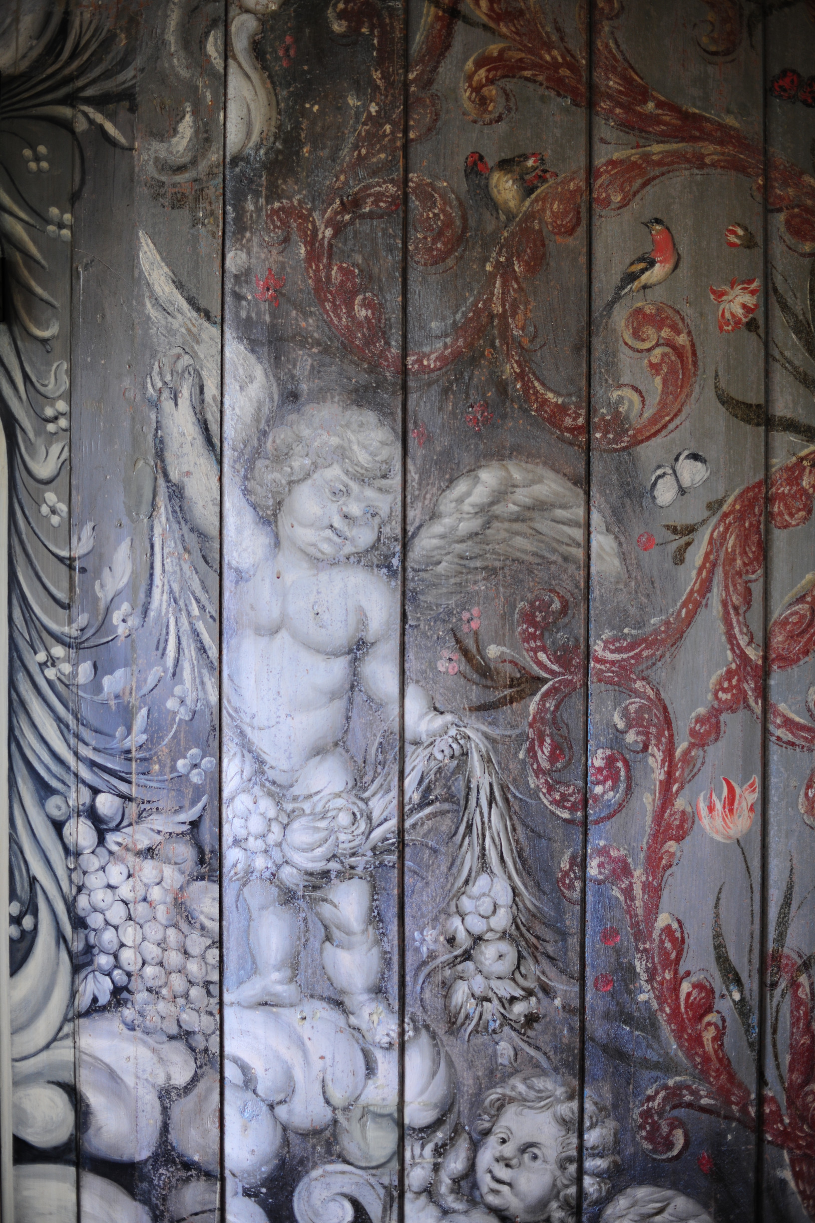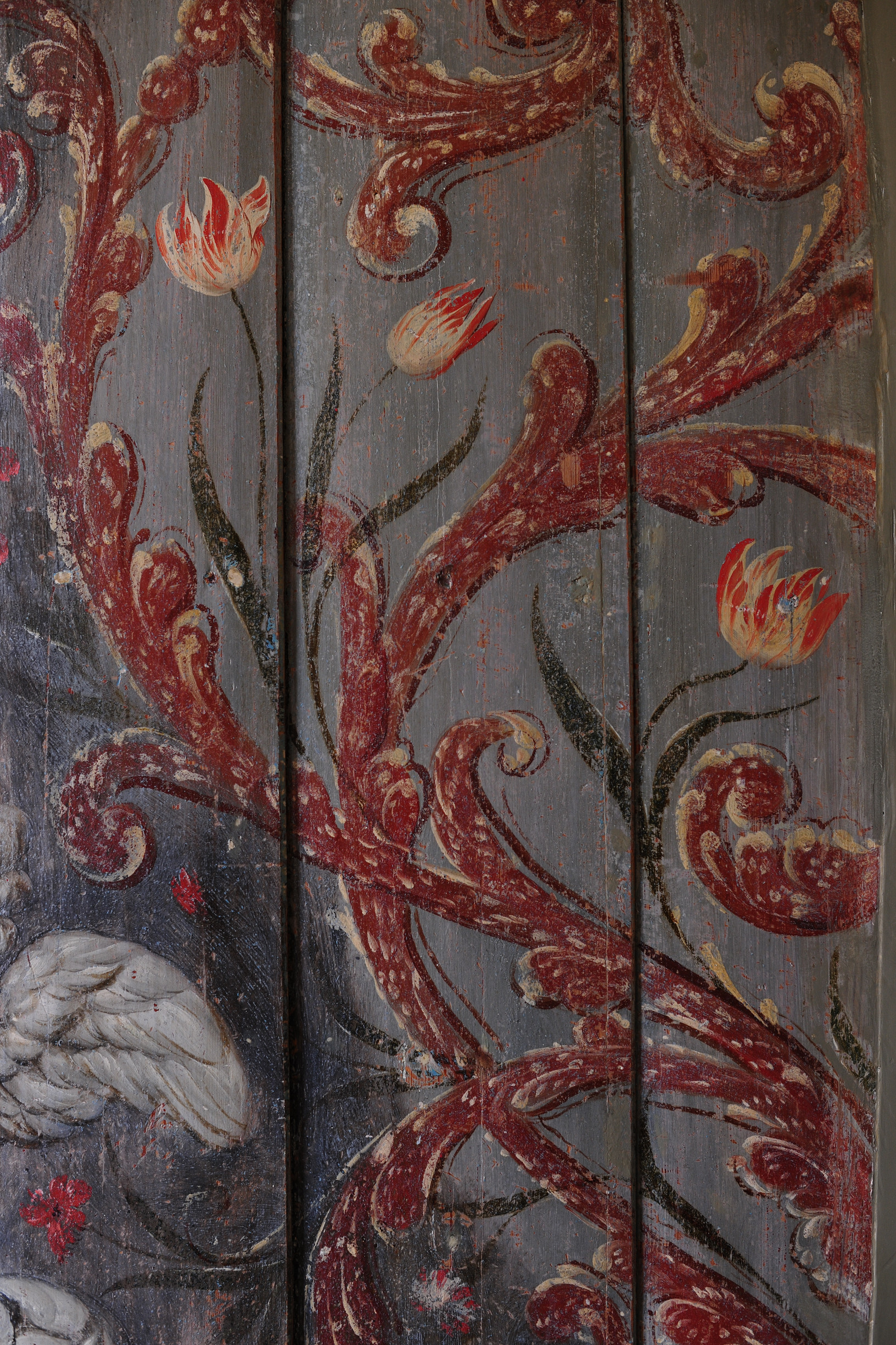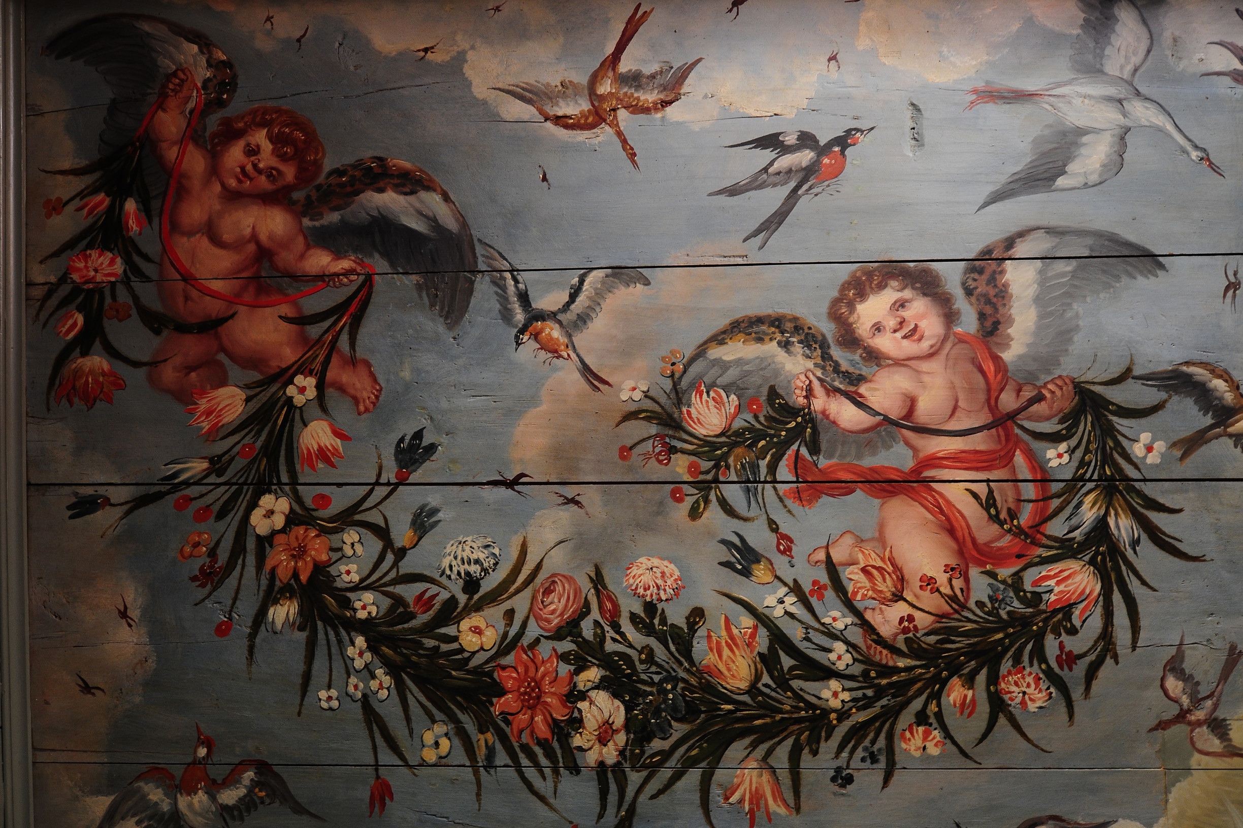 Tijdens deze restauratie zijn de bijzondere schilderingen uit de 17e eeuw tevoorschijn gekomen. Middels een chirurgenmesje zijn de schilderingen achter de soms wel 10 lagen verf teruggebracht naar de originele laag uit 1654. Ruim 10 jaar hebben de huidige eigenaren Jos en Elly van Doornik hier dagen en ook wel nachten aan gewerkt. Je kunt je bijna niet voorstellen hoeveel tijd en energie dit gekost heeft. Maar het resultaat mag er zijn. Prachtige decoratieve schilderingen met daadwerkelijke gebeurtenissen uit vroeger tijden. Zo bevindt zich een wand met mozes in het rieten mandje uit de Nijl, neptunus met de zeenimf Amphitrite alsmede een leeuwenjacht door Alexander de Grote met zijn helper Lisimachus. De decoraties lijken door verschillende schilders en in verschillende tijden te zijn aangebracht. Het is een hele grote puzzel geweest om elke plank de juiste plek in het huis te geven en hier is dan ook met grote zorgvuldigheid en tijd heel veel jaren hard aan gewerkt. De eigenaren mogen met trots deze restauratie als een groot succes zien. Het resultaat mag er zijn en dat je dit meekrijgt na een dag in dit huis te zijn geweest, is dan ook een feit. Ervaar het ook om je te laten inspireren door hoe intensieve arbeid, tijd en gedrevenheid hebben geleidt tot prachtige kunst van onschatbare waarde.